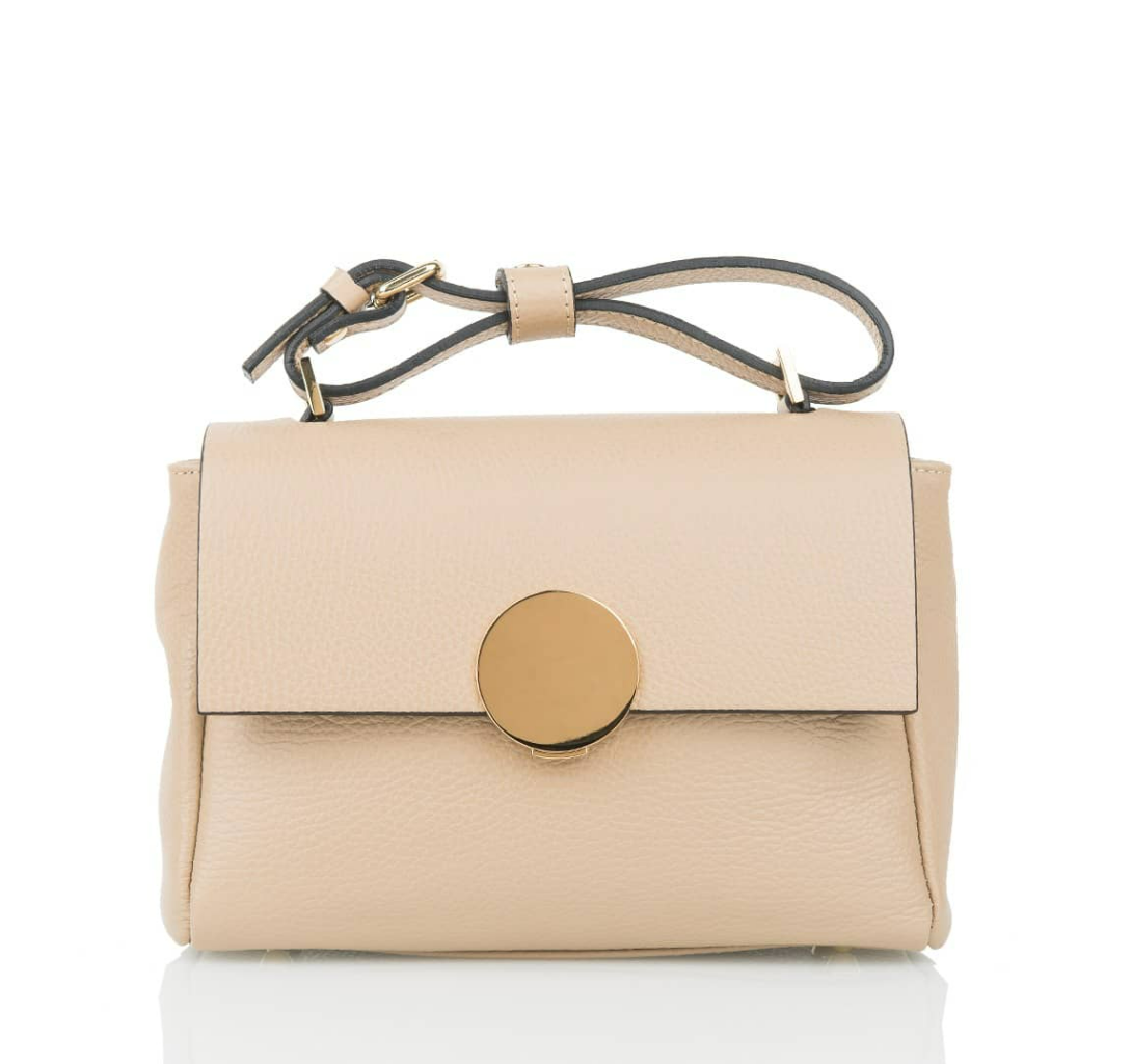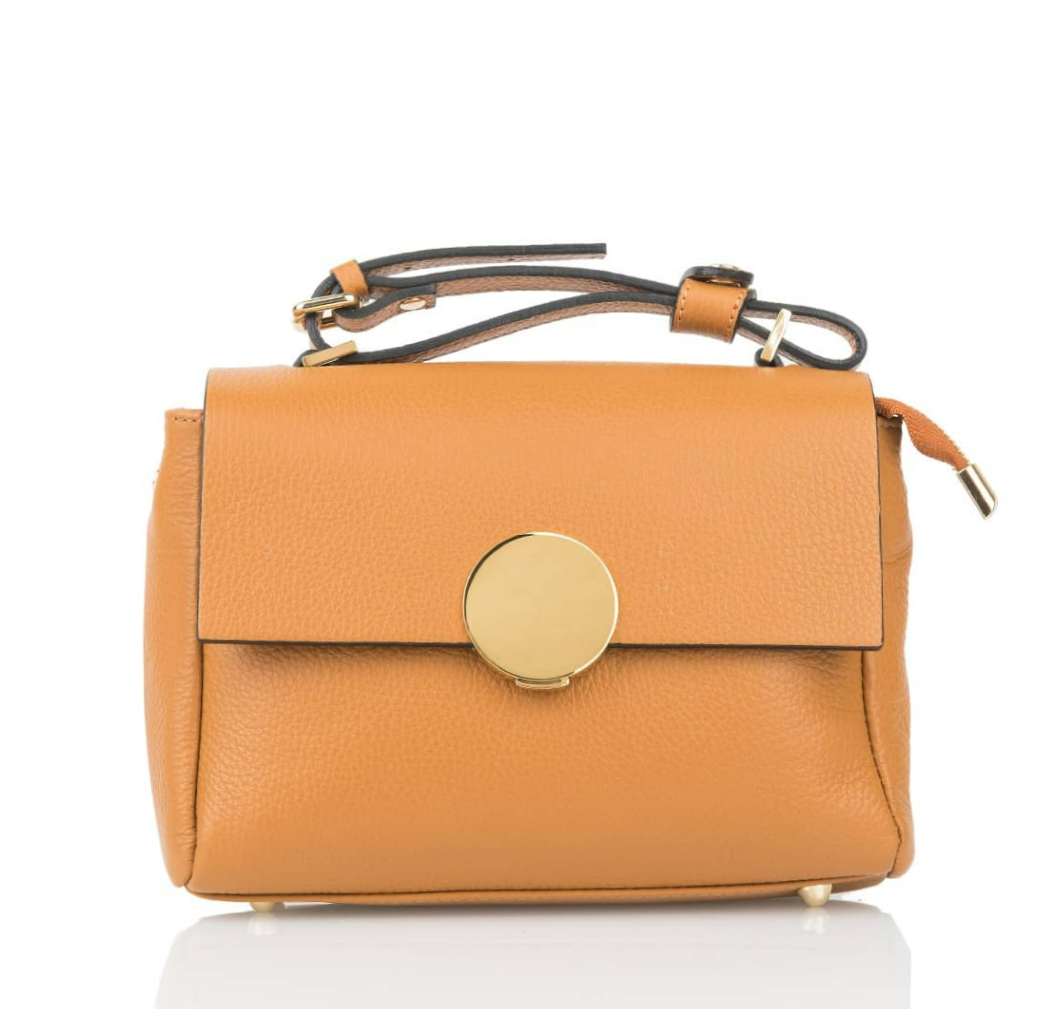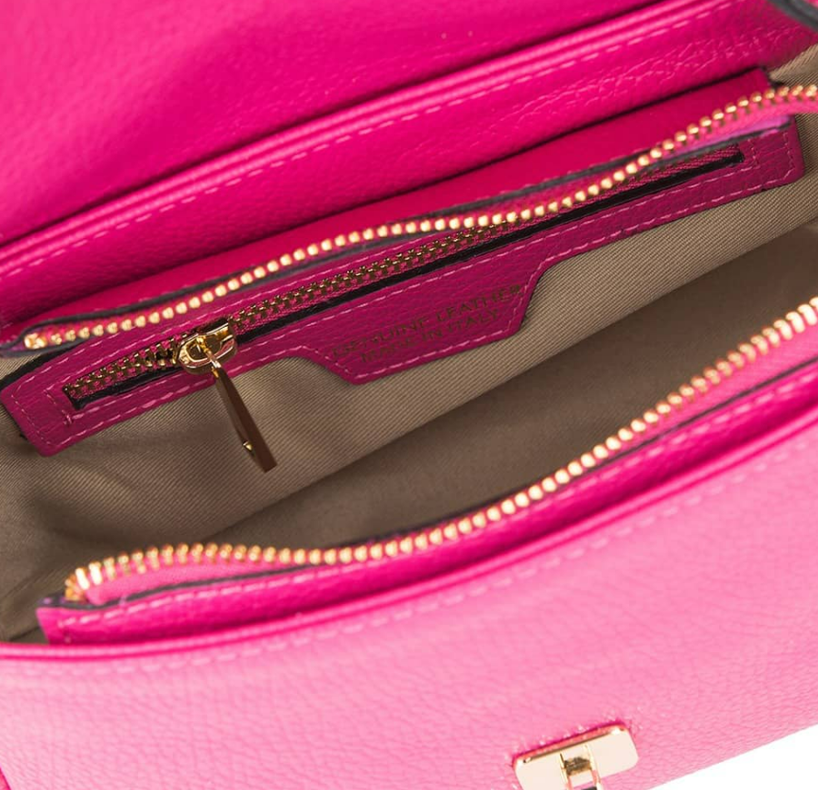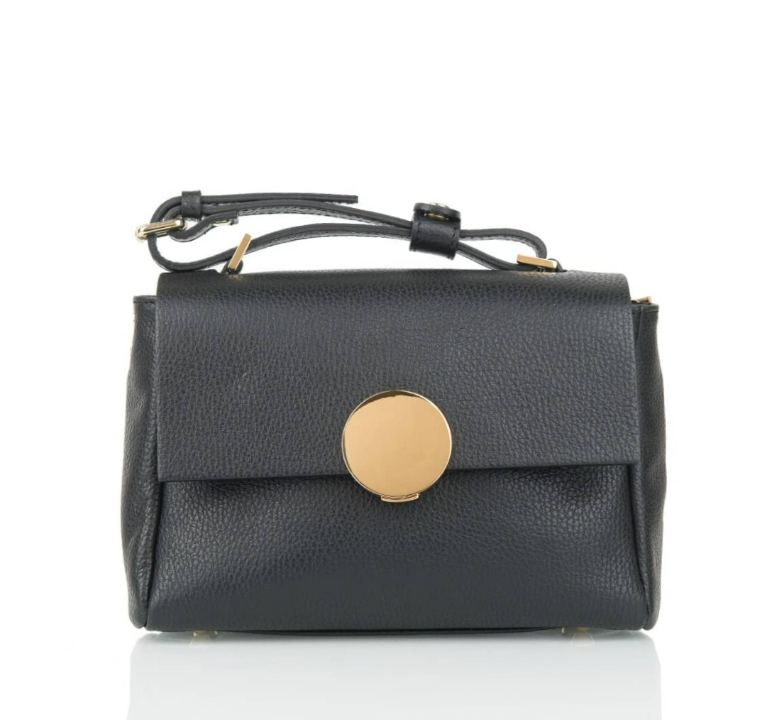 Materiale esterno: vera pelle con chiusura oro su patta. Materiale: fodera in tessuto e ecopelle. Interni: tasca. Esterno: chiusura con bottone oro. Tracolla removibile in pelle regolabile