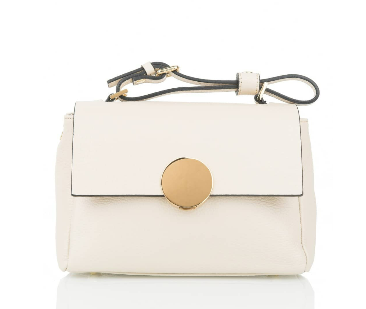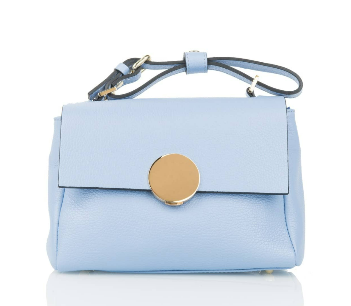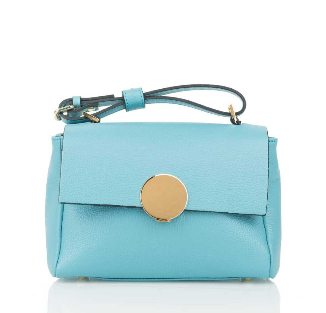 Materiale esterno: vera pelle con chiusura oro su patta. Materiale: fodera in tessuto e ecopelle. Interni: tasca. Esterno: chiusura con bottone oro. Tracolla removibile in pelle regolabile